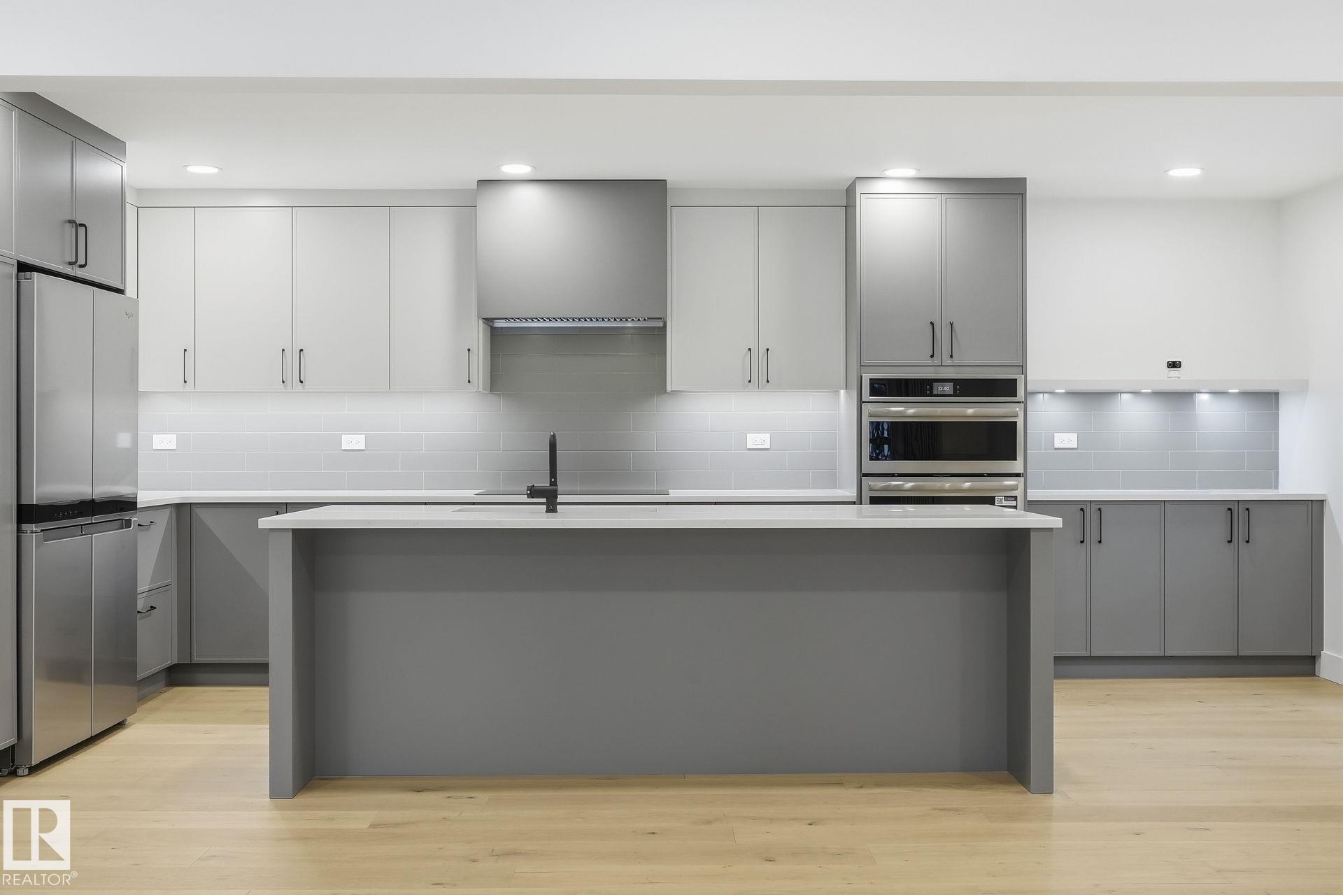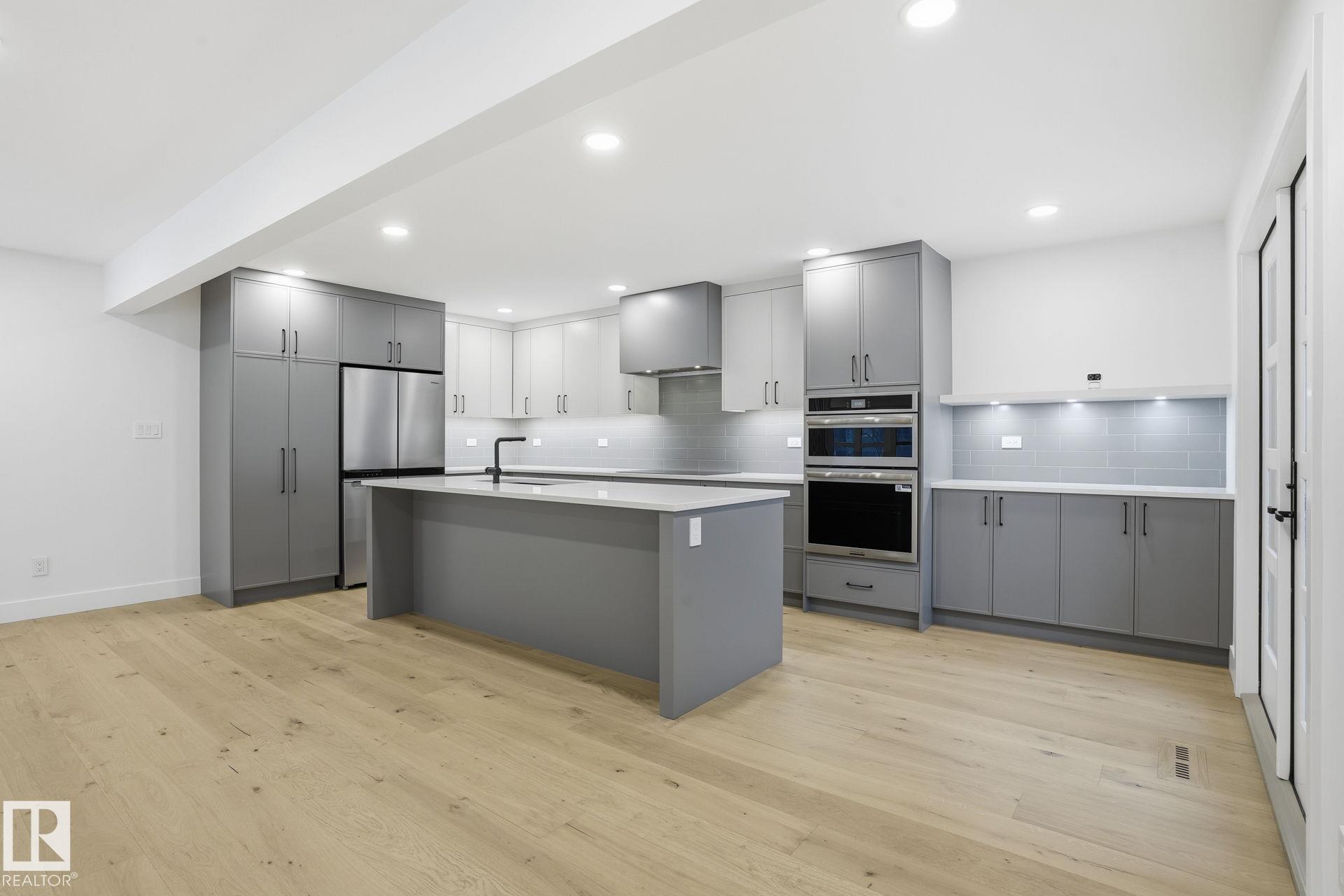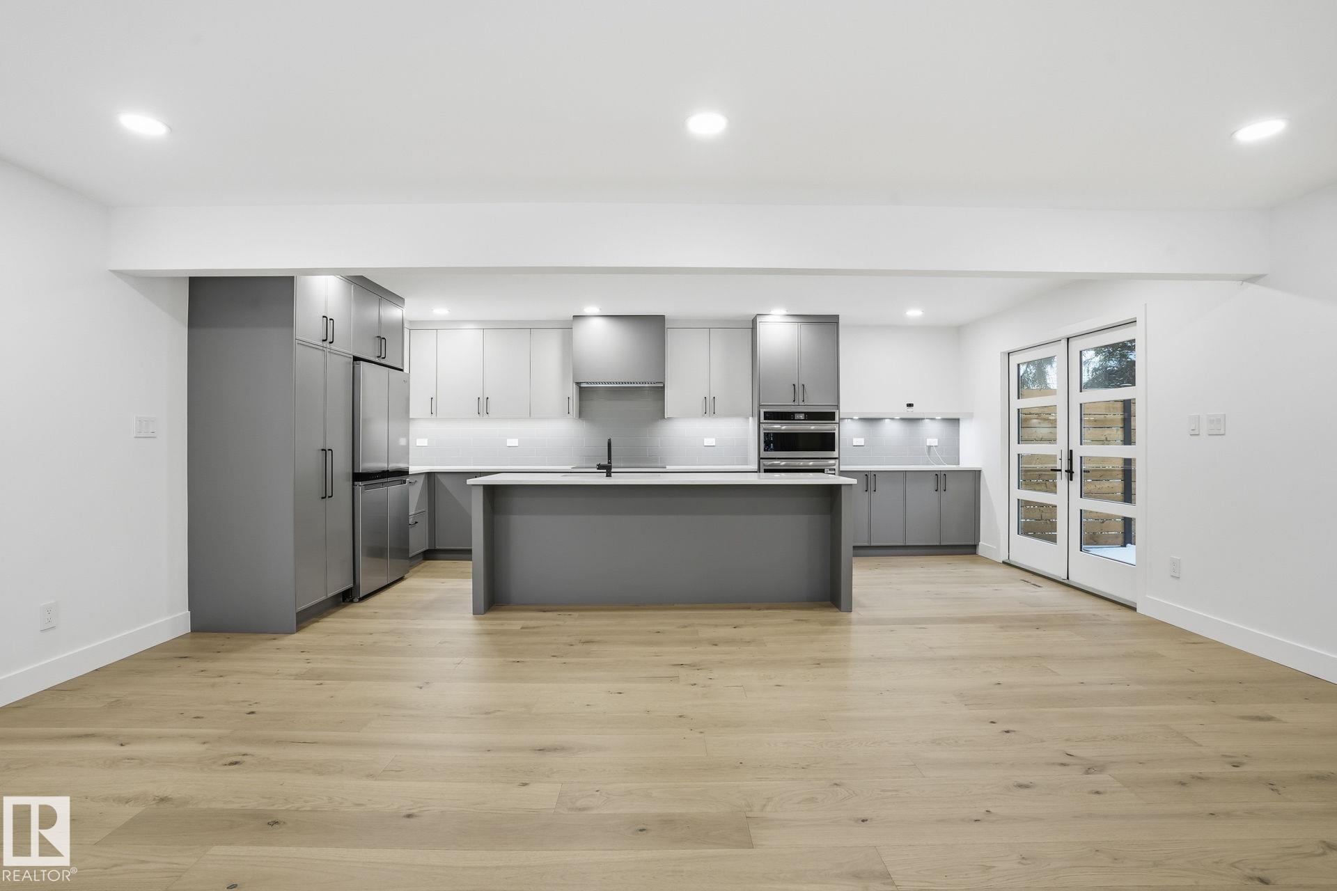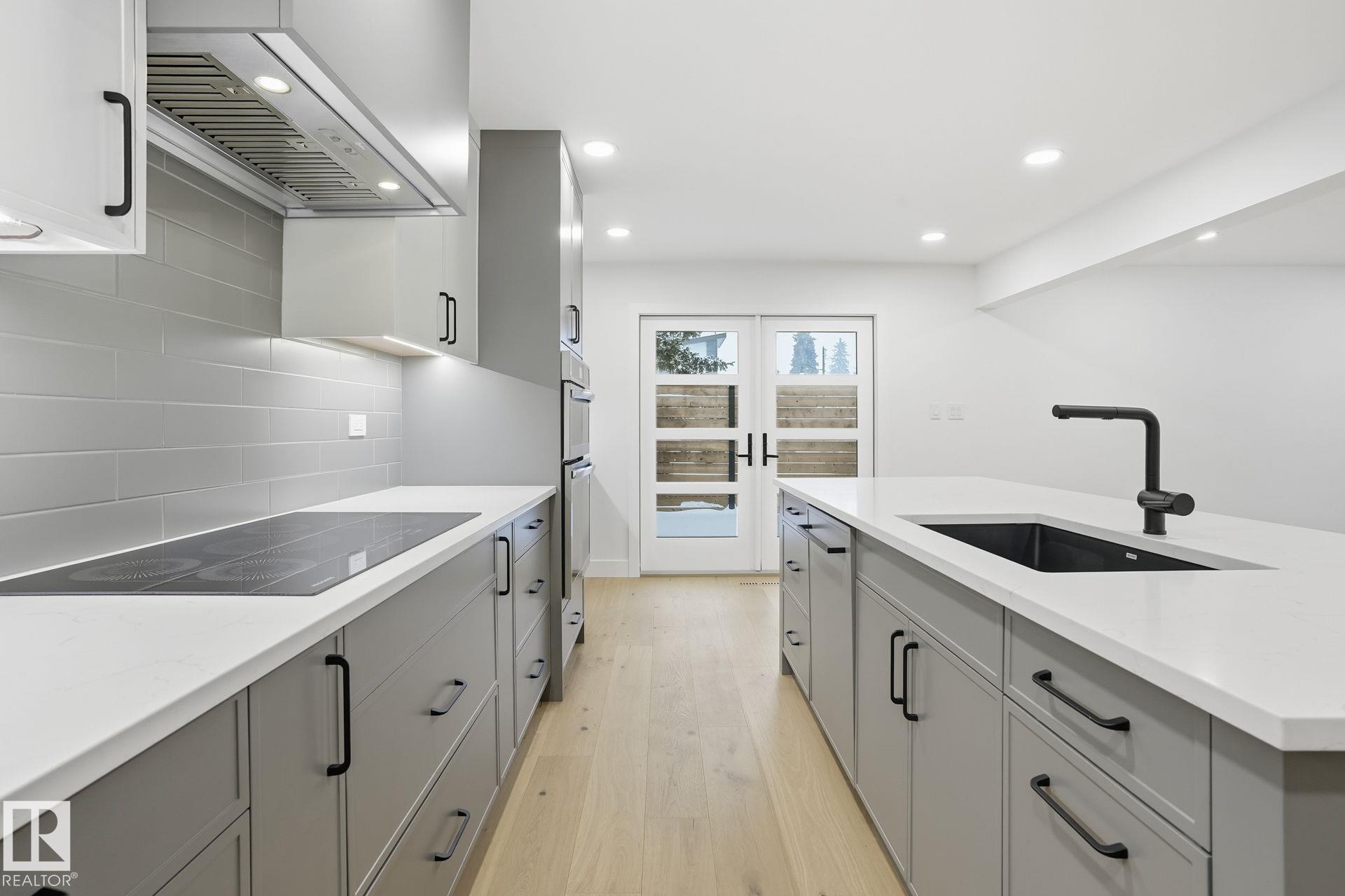 Welcome to this beautifully modernized home ON A CORNER LOT in the heart of Crestwood, where timeless curb appeal meets high-end renovations and thoughtful upgrades throughout. Pride of ownership is evident from the exterior to the interior finishes. Major improvements include a 50 YEAR RUBBER SHINGLE ROOF, GUTTERS, DOWNSPOUTS AND SOFFITS, ACRYLIC STUCCO, 6 MM ENGINEERED HARDWOOD, upgraded casings and baseboards, and sleek flat drywall ceilings, delivering both style and long-term peace of mind. The heart of the home is the custom-designed Town & Country kitchen, showcasing GRANITE COUNTERTOPS, a classic subway tile backsplash. Culinary enthusiasts will appreciate the ALL-NEW PREMIUM APPLIANCES, including a Miele dishwasher and induction cooktop, blending performance with contemporary design. Set in the highly sought-after Crestwood community, this property offers a rare opportunity to enjoy modern upgrades in one of Edmonton?s most established and picturesque neighbourhoods